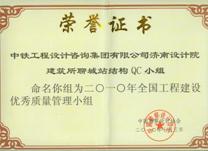 青島客站改造工程榮獲第九屆中國土木工程詹天佑獎 聊城站結(jié)構(gòu)QC榮譽證書 山東省勘察設(shè)計QC一等獎(青島站無站臺柱雨棚結(jié)構(gòu)設(shè)計)