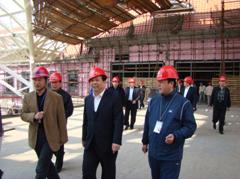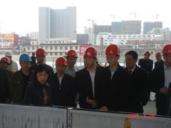 山東省省長姜大明視察建設(shè)中的青島站 鐵道部副部長胡亞東、盧春房視察建設(shè)中的青島站