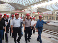 鐵道部副部長陸東福視察建設(shè)中的青島站 鐵道部總規(guī)劃師鄭健視察建設(shè)中的煙臺站