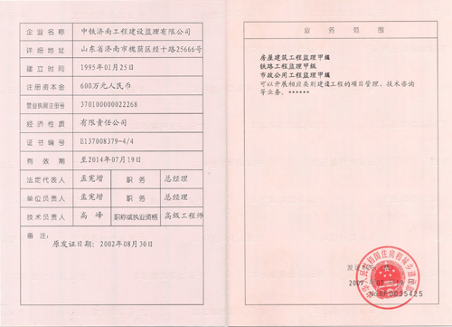 1、公司監(jiān)理資質(zhì)證書