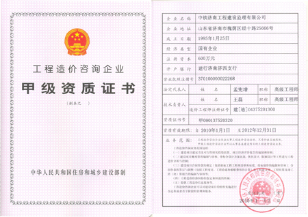 2、公司造價咨詢資質(zhì)證書