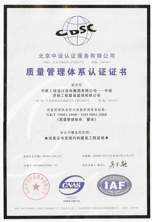 中鐵濟南工程建設(shè)監(jiān)理有限公司成立于1995年1月,為中鐵工程設(shè)計咨詢集團(tuán)有限公司的全資子公司。公司具有鐵路工程、市政公用工程、房屋建筑工程三項監(jiān)理甲級資質(zhì)及造價咨詢甲級資質(zhì),能夠開展相應(yīng)類別建設(shè)工程的項目管理、技術(shù)咨詢等業(yè)務(wù)。公司始終堅持科學(xué)管理,認(rèn)真貫徹ISO9000質(zhì)量管理體系,實行標(biāo)準(zhǔn)化管理,強化思想教育和業(yè)務(wù)培訓(xùn),逐步形成了完善的管理制度,2000年通過了ISO9001質(zhì)量管理體系認(rèn)證。