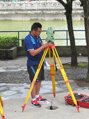 本次比賽由團委書記趙廷儉擔任領隊,航遙院吳國盼出任裁判,航遙院郭洪利和胡慶豐、濟南院王元陸、太原院黃原春四名選手參加。在三天的比賽期間,選手們在酷熱的天氣里,與來自股份公司系統的22家單位共88名選手同場競技。每名選手在隊友的配合下完成高程控制測量、平面控制測量和道路放樣三個項目,并統一參加了測量基礎理論知識的考試。
