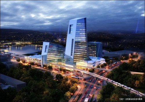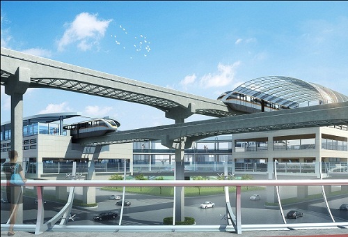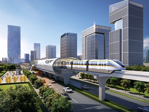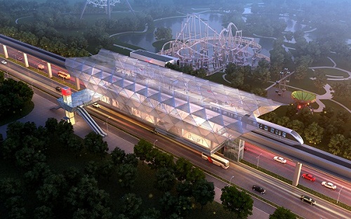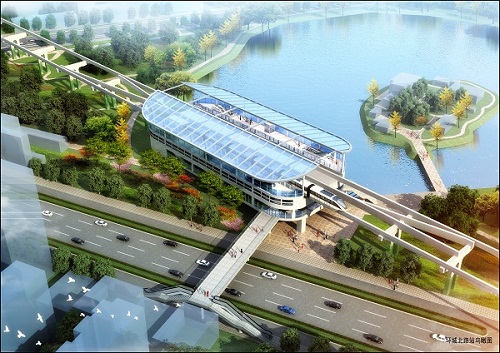 平行換乘、綜合體一體開(kāi)發(fā)的輕型跨座式單軌交通效果圖