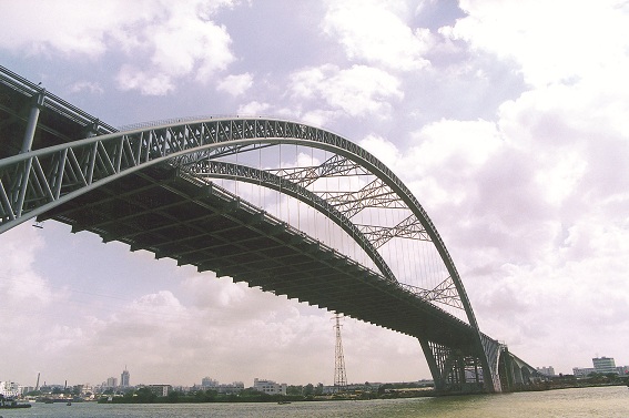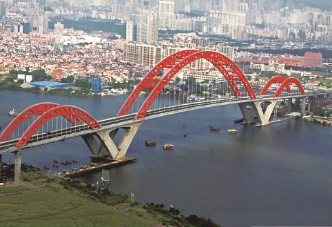 廣州市新光大橋——珠江景觀長(zhǎng)廊上的新地標(biāo),它恰似一只騰飛而起的大雁,又如一道彩虹飛架在珠江上。新光大橋全長(zhǎng)1083米,大橋跨越珠江主航道,主墩基礎(chǔ)位于水中,地質(zhì)條件復(fù)雜,水深受潮汐影響顯著。主橋采用177m+428m+177m三跨連續(xù)鋼桁拱與混凝土三角剛構(gòu)的新型組合結(jié)構(gòu),工程技術(shù)難度極大,施工風(fēng)險(xiǎn)極高。徐升橋帶領(lǐng)技術(shù)團(tuán)隊(duì)對(duì)此種新型橋梁結(jié)構(gòu)的受力原理、關(guān)鍵構(gòu)造以及施工新方法、新工藝等進(jìn)行了成套技術(shù)攻關(guān),經(jīng)過(guò)3年的研究和工程實(shí)踐,取得了諸多創(chuàng)新性成果:設(shè)計(jì)出世界上首座三跨連續(xù)鋼桁拱橋與混凝土三角剛構(gòu)的新型組合橋;提出了“原位臥拼+垂直提升”和“三大段浮運(yùn)提升”施工方案;找到了利用小型機(jī)具實(shí)現(xiàn)拱橋大節(jié)段安裝的新方法,并評(píng)為國(guó)家級(jí)工法(GJYJGF067-2008),大橋合龍時(shí),這座“巨無(wú)霸”的主拱軸線偏差僅為兩個(gè)毫米;提出了大型深水基礎(chǔ)不封底單層鋼板樁圍堰施工新工藝,獲得了國(guó)家發(fā)明專利;降低了施工成本,大橋的鋼結(jié)構(gòu)用量只有18t/m,大大低于同等跨度橋梁,節(jié)省鋼材3500噸,采用不封底鋼板樁圍堰技術(shù)節(jié)省了混凝土8000立方米,節(jié)省造價(jià)共4600萬(wàn)元;在不完全斷航情況下僅2天時(shí)間便實(shí)現(xiàn)了主拱拱肋中段的安裝架設(shè)工作,并創(chuàng)造了剛構(gòu)拱組合跨度、拱肋滑移上船、提升以及拱肋曲梁合龍工藝等世界紀(jì)錄。相關(guān)發(fā)明專利在多座大橋建設(shè)中得到成功應(yīng)用,取得良好的社會(huì)效益和經(jīng)濟(jì)效益。新光大橋先后獲得2007年廣州市科學(xué)技術(shù)一等獎(jiǎng)、2007年中國(guó)鐵路工程總公司科學(xué)技術(shù)特等獎(jiǎng)以及2008年中國(guó)建設(shè)工程魯班獎(jiǎng)(國(guó)家優(yōu)質(zhì)工程獎(jiǎng))、第八屆中國(guó)土木工程詹天佑獎(jiǎng)等榮譽(yù)。