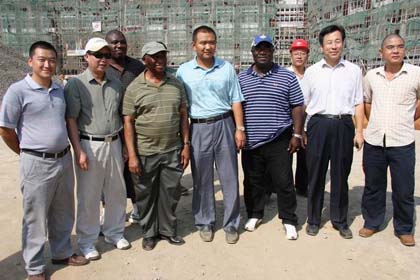 周大使和博阿凱副總統(tǒng)逐一參觀了在建的各個(gè)建筑,仔細(xì)查看工程質(zhì)量,并不時(shí)向項(xiàng)目經(jīng)理和我設(shè)計(jì)代表詢問了解情況。博阿凱副總統(tǒng)對項(xiàng)目的質(zhì)量和進(jìn)度非常滿意,稱贊中國公司在短短兩年內(nèi)就在雜草叢生的荒地上建起宏偉的現(xiàn)代化建筑群,體現(xiàn)了中國速度,令人驚嘆。他說,芬德爾分校新校舍將給利比里亞的年輕人帶來良好的學(xué)習(xí)環(huán)境,也將激勵(lì)他們刻苦學(xué)習(xí)、報(bào)效國家;該項(xiàng)目是中利友好合作的象征和見證,是利比里亞的驕傲,利比里亞人民將永遠(yuǎn)銘記中國政府和人民的深情厚意。隨后,博阿凱副總統(tǒng)按當(dāng)?shù)剌^高禮遇向項(xiàng)目承建單位贈(zèng)送了兩只山羊,對中國工人的辛勤勞動(dòng)表示慰問和感謝。