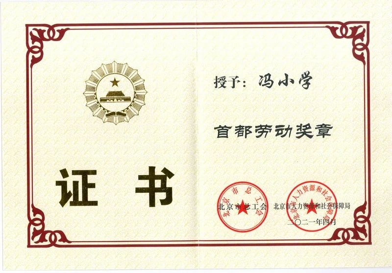 2021年獲北京市總工會(huì)、北京市人力資源和社會(huì)保障局授予的“首都勞動(dòng)獎(jiǎng)?wù)隆保?