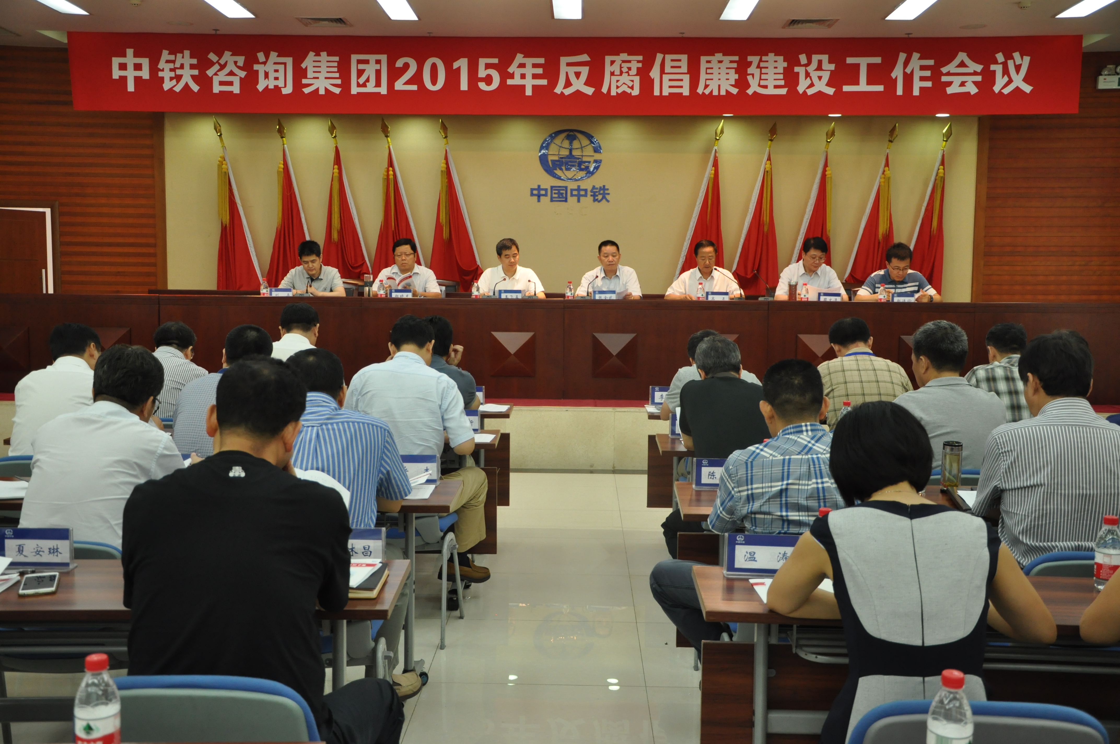 2015年7月29日上午,中鐵咨詢集團(tuán)在1301會議室召開反腐倡廉建設(shè)工作會議暨黨風(fēng)廉政建設(shè)和反腐敗工作聯(lián)席會議。公司黨委書記、董事長張金武、紀(jì)委書記王飛孟,公司黨風(fēng)廉政建設(shè)和反腐敗工作聯(lián)席會議成員,公司紀(jì)委委員、紀(jì)檢員,各單位黨委書記、紀(jì)委書記,各直屬黨總支、黨支部書記、紀(jì)律委員(異地分公司、子公司通過視頻)共59名同志參加了會議。