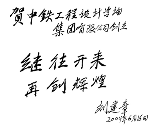 原鐵道部部長劉建章題詞(賀中鐵工程設計咨詢集團有限公司成立)
