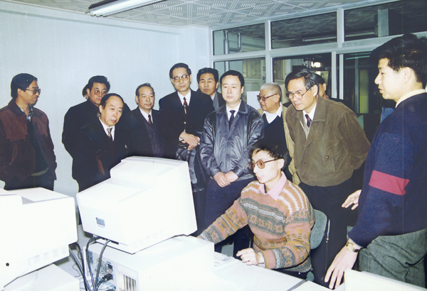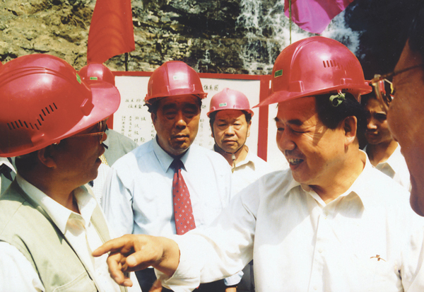 原鐵道部部長傅志寰視察內昆鐵路時同公司監(jiān)理人員親切交談