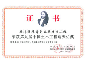 青島火車(chē)站QC攻關(guān)小組,共獲得國(guó)家級(jí)獎(jiǎng)2項(xiàng),省部級(jí)獎(jiǎng)3項(xiàng);獲得國(guó)家級(jí)優(yōu)秀咨詢(xún)成果二等獎(jiǎng),國(guó)家級(jí)優(yōu)秀設(shè)計(jì)二等獎(jiǎng),鐵道部?jī)?yōu)秀設(shè)計(jì)一等獎(jiǎng),第九屆中國(guó)土木工程詹天佑獎(jiǎng)。