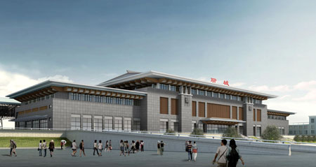 聊城地處經(jīng)濟(jì)發(fā)達(dá)的山東省,居魯西,臨河南、河北,京九鐵路、邯濟(jì)鐵路在此交匯。聊城站設(shè)計(jì)旅客最高聚集人數(shù)2500人,為中型旅客車站。站房總建筑面積14950㎡,南北長164.8m,東西寬43.4m,共三層,總高度28.9m。建筑造型取意于聊城的象征——光岳樓,左右對稱的布局、精細(xì)的雙重屋檐、厚重的墻體、古樸的色彩,使得整個站房雄渾、穩(wěn)重,并富有傳統(tǒng)韻味,體現(xiàn)了 “運(yùn)河古都”聊城的城市特色。