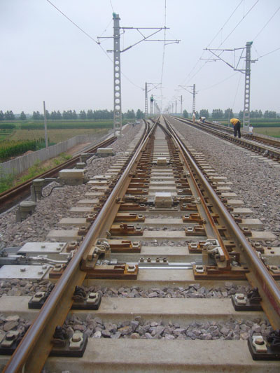 新Ⅲ型混凝土橋枕 特點(diǎn):新Ⅲ型混凝土橋枕加大了護(hù)軌與主軌的間距,使得大機(jī)作業(yè)時(shí)不必拆除護(hù)軌,極大的減少了現(xiàn)場(chǎng)的配合工作量,提高了大機(jī)的作業(yè)效率,有利于提高線(xiàn)路質(zhì)量。同時(shí)也提高了護(hù)軌扣件的抗橫向力能力,加強(qiáng)了護(hù)軌的作用,因而具有極大的社會(huì)效益。本設(shè)計(jì)自2008年完成后,迅速在全路推廣使用。不僅既有線(xiàn)大部分橋枕進(jìn)行了更換,目前新線(xiàn)建設(shè)也全面采用新Ⅲ型橋枕,因而也具有較好的經(jīng)濟(jì)效益。