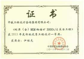 項(xiàng)目位于剛果民主共和國加丹加省克洛維茲市,設(shè)計(jì)采礦規(guī)模3000t/d,年產(chǎn)陰極銅25000t/a,包括采礦、浸出、萃取、電積等部分。中鐵咨詢冶金院主要負(fù)責(zé)萃取-電積生產(chǎn)線的施工圖設(shè)計(jì)任務(wù),設(shè)計(jì)采用了三萃一反萃取、不溶陽極電解生產(chǎn)陰極銅的冶煉工藝。2010年完成初步設(shè)計(jì)工作,2011年完成施工圖設(shè)計(jì)工作, 2012安排專業(yè)技術(shù)人員進(jìn)行該項(xiàng)目的現(xiàn)場(chǎng)技術(shù)服務(wù)工作。2012年10月項(xiàng)目提前半年實(shí)現(xiàn)一次試生產(chǎn)成功,產(chǎn)出第一批高純陰極銅,并順利達(dá)到了設(shè)計(jì)產(chǎn)能。該項(xiàng)目榮獲2013年度全國有色金屬行業(yè)部級(jí)優(yōu)秀工程設(shè)計(jì)一等獎(jiǎng)。
